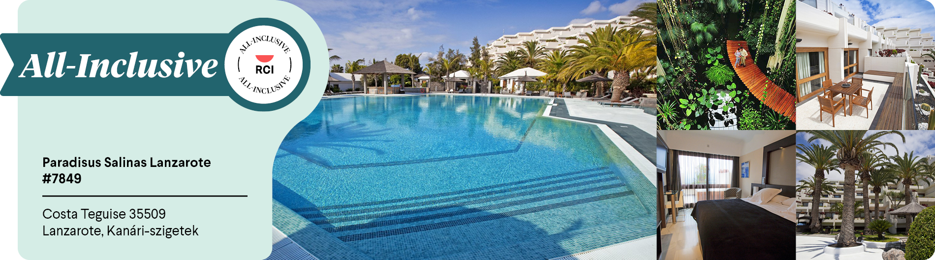 Néhány RCI-partnerüdülő all-inclusive, 7 éjszakára foglalható ajánlatokkal várja. Az all-inclusive díjat az üdülőbe érkezéskor fogja kifizetni. Ne aggódjon – egyértelműen jelezni fogjuk ezt, amint Ön végigmegy a foglalási folyamaton.